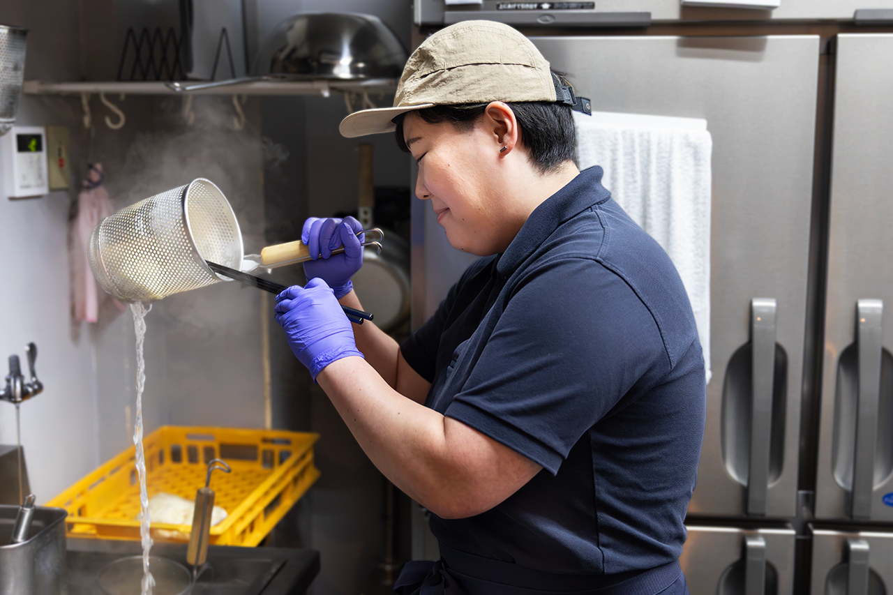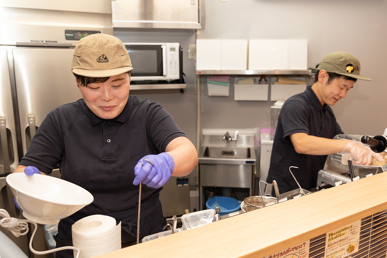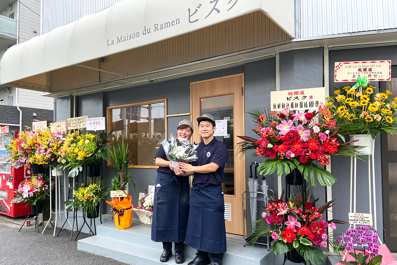大学卒業後は希望通り飲食の道へ。その後、2016年から『丿貫』でアルバイトとして働き、のちに正社員へ。結婚を機に源己さんとともに、2022年、『La Maison du Ramen ビスク』をオープンした。