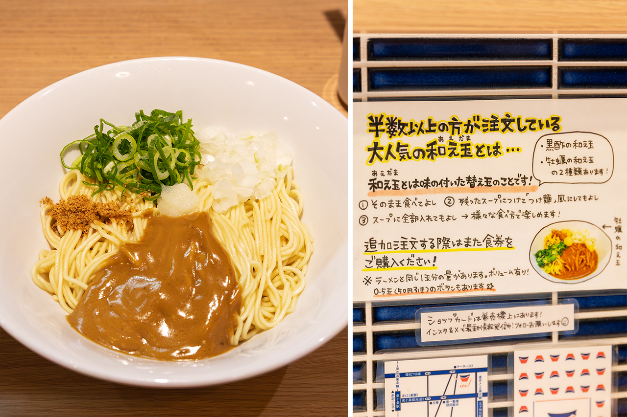 来店客の6割が注文するという『和え玉』は、味がしっかりついた替え玉。麺だけでも一品のように楽しめるほか、残ったスープに合わせれば、また違った美味しさが広がる。