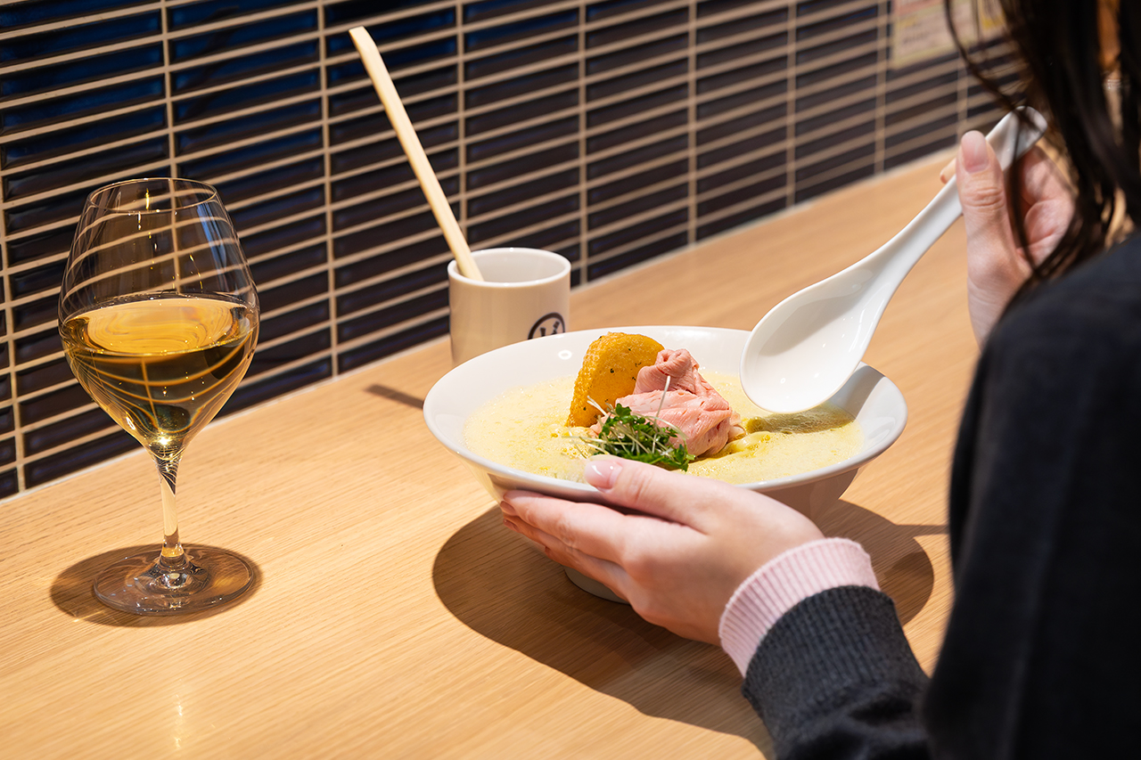 魚介ベースのスープは相性が難しく、生臭さが出てしまうワインも多い。それでも妥協せずに探し続け、ついにビスクのラーメンすべてに合う一本を見つけ出した。